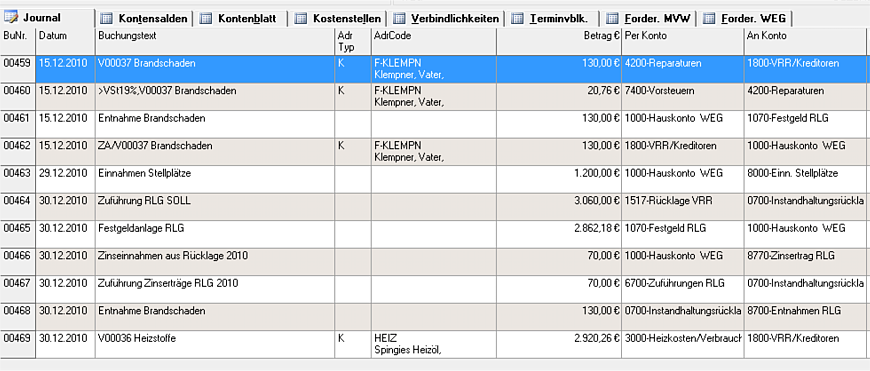 Die Ergebnisse der Hausgeldabrechnung können als Forderungen bzw. Gutschriften verbucht (->Abrechnung->Buchen) werden, so dass im weiteren Verwaltungsverlauf der Abrechnungsbetrag und dessen Ausgleich verfolgt werden kann.